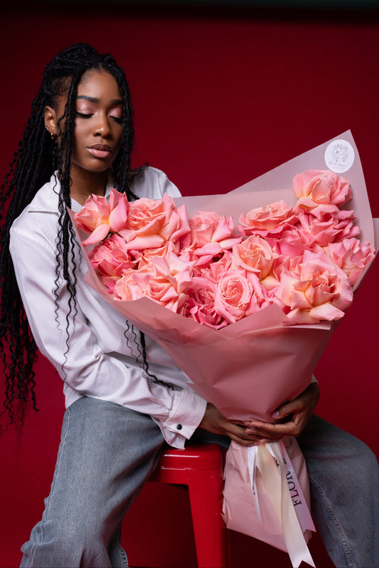 "Just Peachy" Bouquet ( roses, chamomiles, ranunculus)