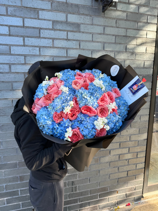 "Country Blues" Roses & Hydrangeas