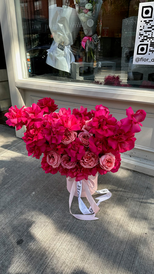 "Words of Love" Box (hot pink French roses, pink expression garden roses)
