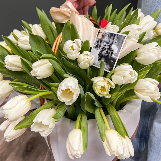 Basket of White Tulips