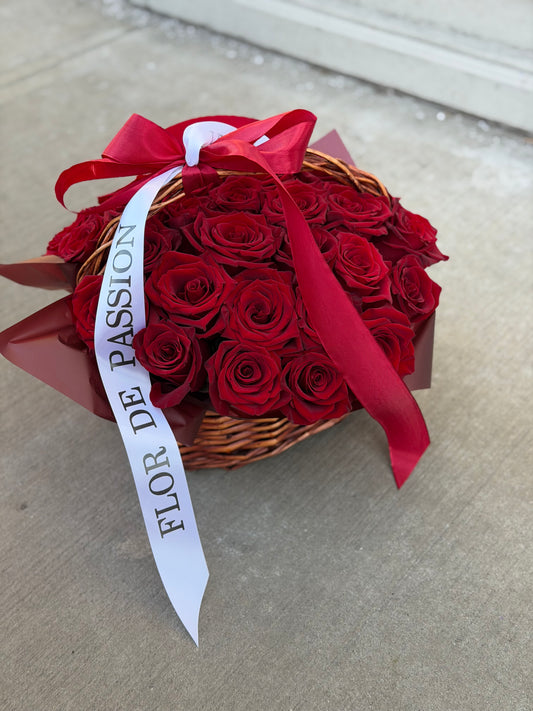 "Shades of Red" Basket ( French Nina roses , French Explorer roses)