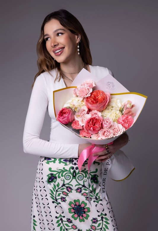 "Strawberry Mousse" Bouquet (pink French roses, dianthuses)