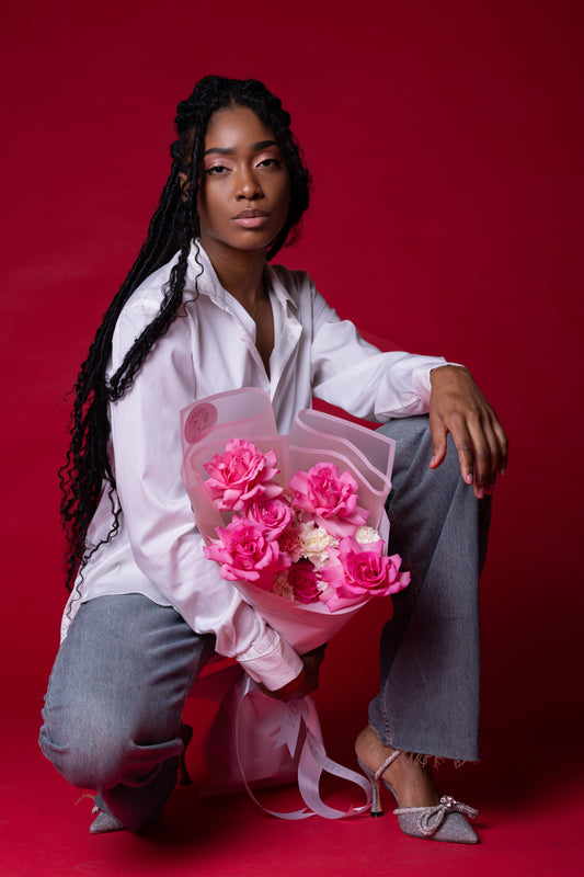 Pink Floyd Roses Bouquet ( hot pink French roses)
