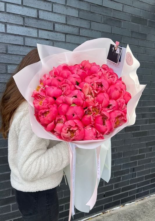 Bouquet of Coral Peonies & Tweedia