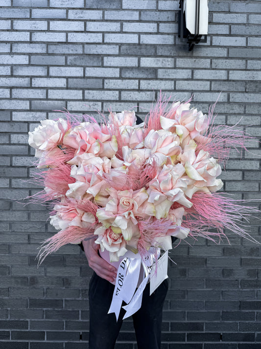 “Petals of Passion” Box (French Hermosa roses, pink expression garden roses)