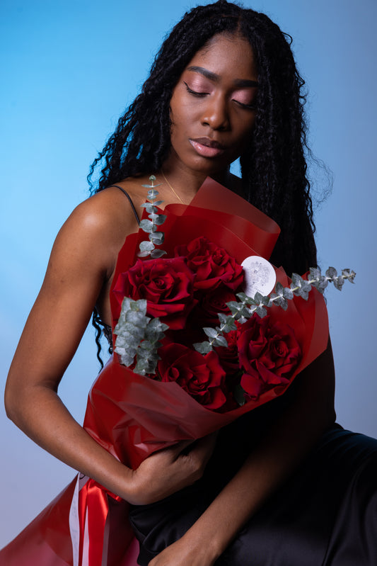 "Bloody Mary" Bouquet (French roses, dianthuses , eucalyptus)