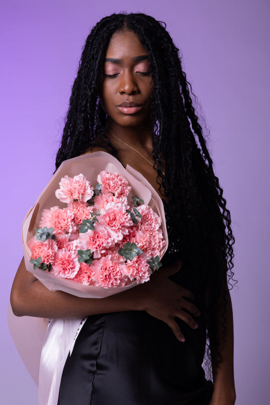 "Slight Smile" Bouquet (French roses, ruskus, hydrangeas, dianthuses , spray roses)
