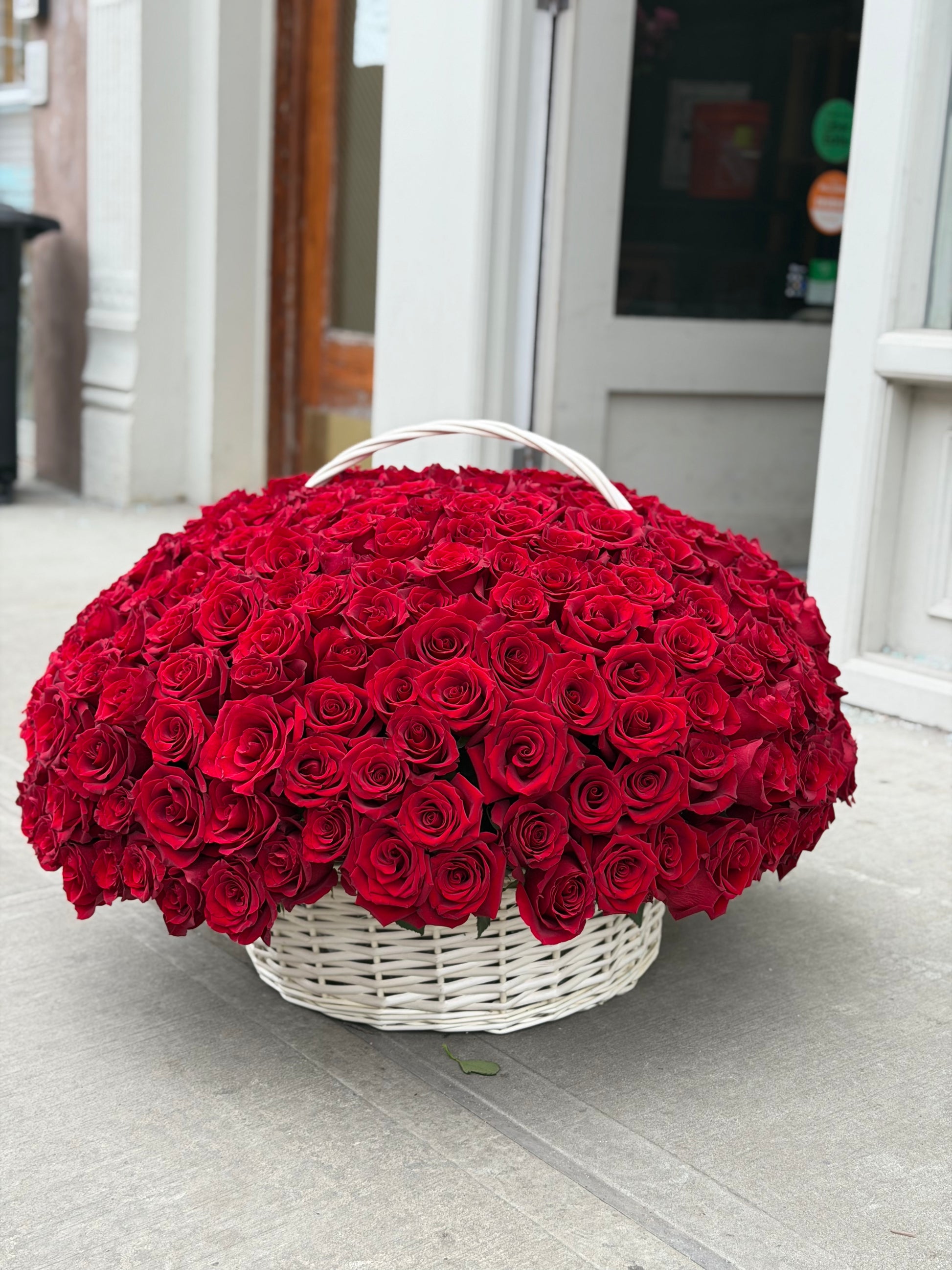 Elevate any occasion with our stunning Basket of Red Roses. Hand-selected crimson blooms arranged in a charming wicker basket create an elegant centerpiece that speaks volumes. Perfect for anniversaries, romantic gestures, or expressing heartfelt appreciation, these vibrant roses bring timeless beauty and sophistication to any space. Each arrangement is crafted with care to ensure freshness and visual impact that lasts.