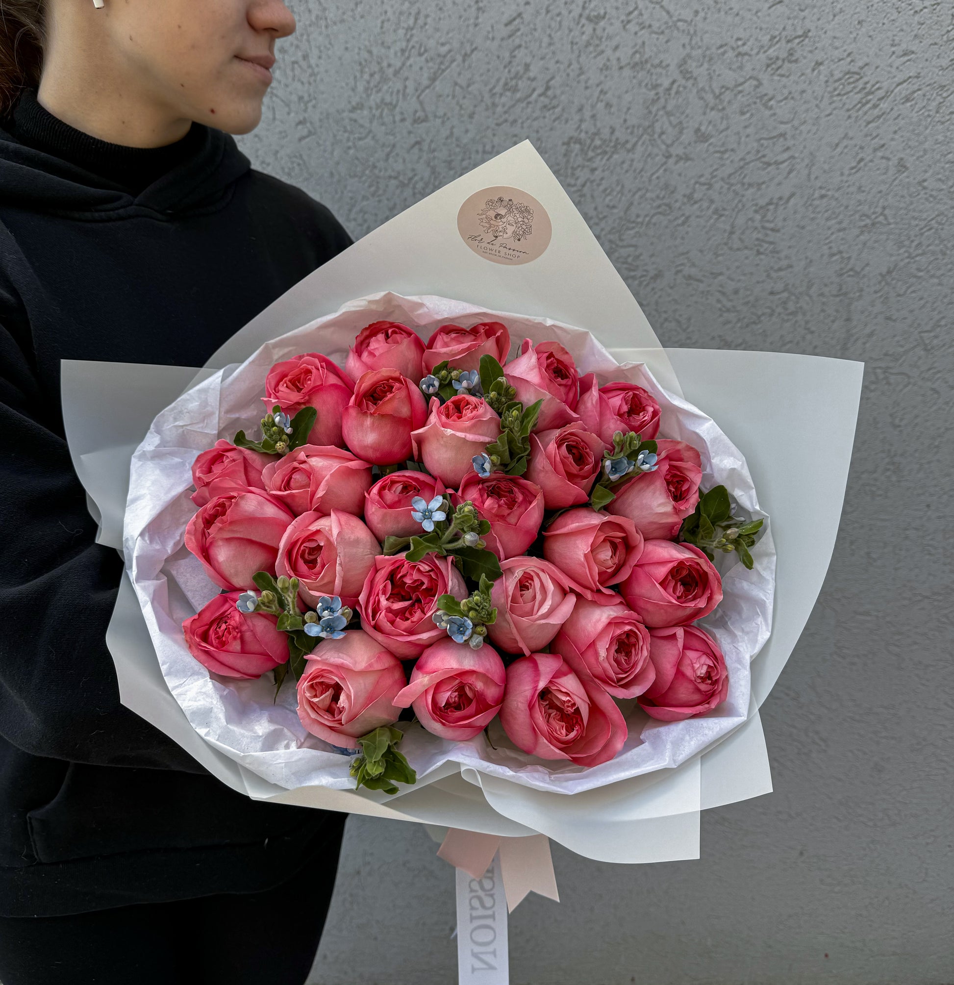 Experience pure elegance with our Pink Expression Garden Roses with Tweedia Bouquet. The delicate pink garden roses provide a beautiful and romantic touch, while the tweedia adds a unique and captivating element. Perfect for weddings, anniversaries, or special occasions.