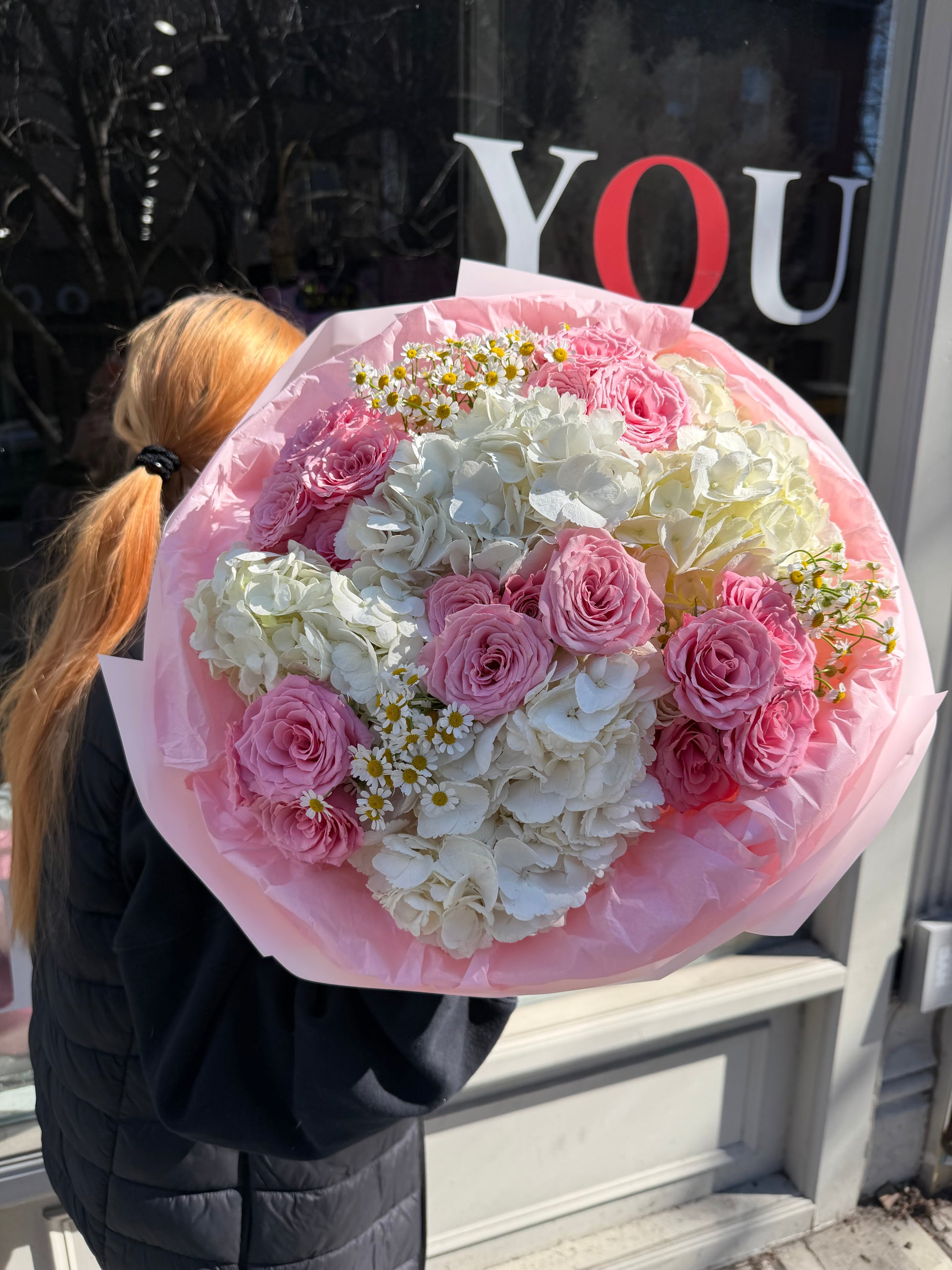“Sweet Candy” Bouquet (chamomiles, spray roses, hydrangeas)